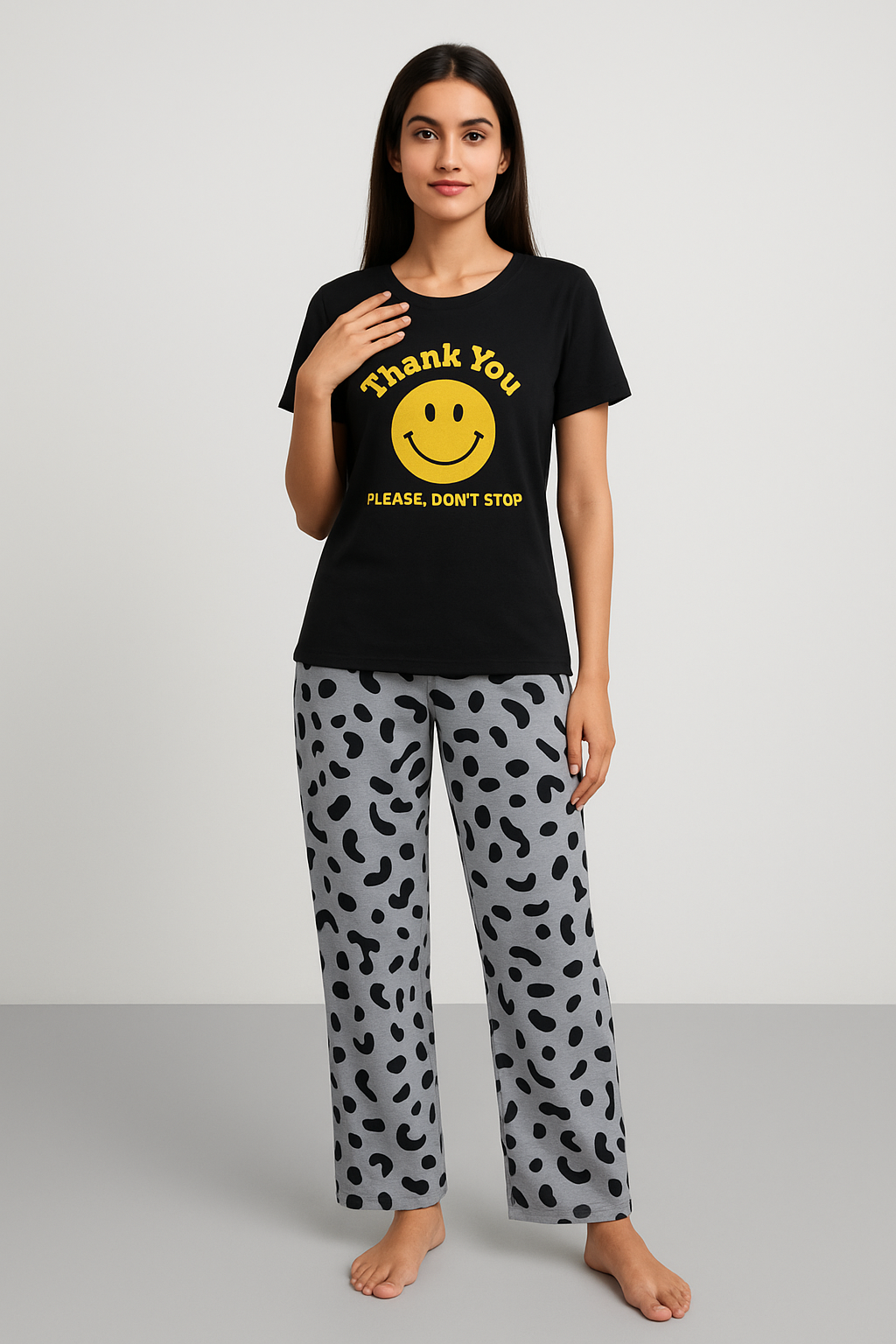 Black Thankyou Women Printed PJ Suit