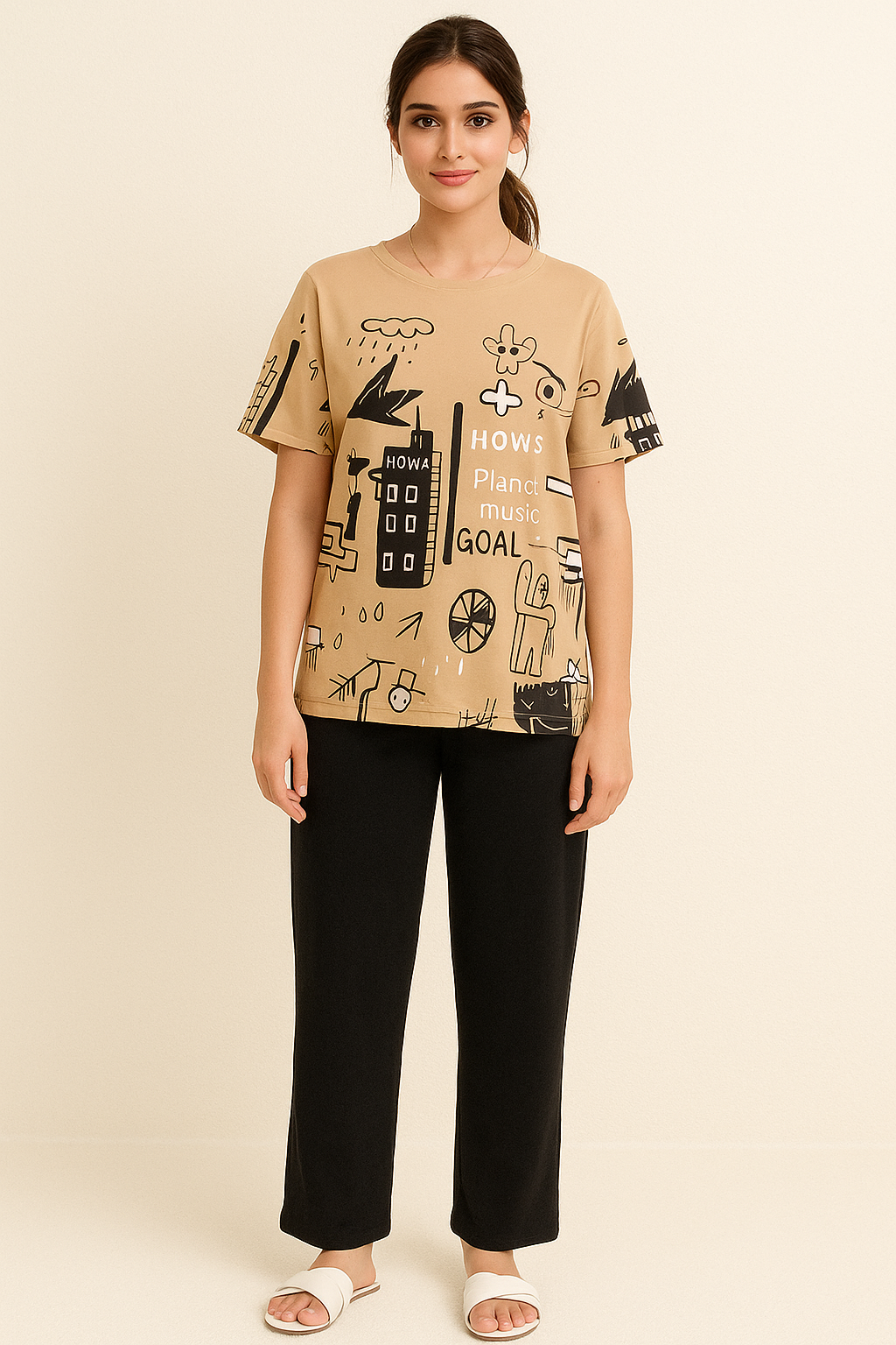 Made from soft, breathable fabric, this set is designed for all-day comfort without compromising on style. The trendy prints add a modern vibe – perfect for sleep, lounging, or casual wear at home.